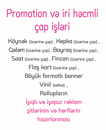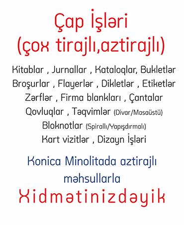 Daha Ətraflı Daha Ətraflı Daha Ətraflı Daha Ətraflı Daha Ətraflı Daha Ətraflı Yeniliklər Xəbərlər QIŞ Kampaniyamız Xəbərlər Kitab və Jurnal çapı Xəbərlər Paket İşlərimiz Əlaqə ÜnvanŞeyx Şamil küç.45 Telefon(+994 12) 492 57 74 / (+994 70) 221 86 01 Emailyekpro@mail.ru office@yekpro.com